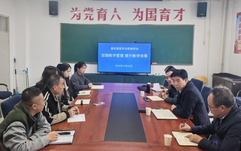 2025年10月22日下午,伟德bv国际体育组织召开畜牧兽医专业群教研室会议,围绕贯彻落实公司“十月教学工作会议”精神,聚焦当前教学管理中的突出问题,就如何提升教学质量、增强育人实效开展深入研讨。公司党委副书记王录军、教务处处长魏恒到会指导。会议由畜牧兽医教研室主任杨永倩主持。会议直面当前畜牧兽医专业群教学中存在的多发问题,进行了深度研讨。与会教师积极交流经验,分享了运用平时成绩激励约束、引入生产实践与临...