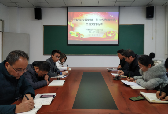 为增强公司党员干部责任担当意识,进一步激发干事创业激情,12月9日下午,伟德bv国际体育党总支组织教工党支部、员工党支部在农学楼201会议室集中开展了“立足岗位做贡献,担当作为勇争先”主题党日活动,活动由办公室主任王百祥主持。