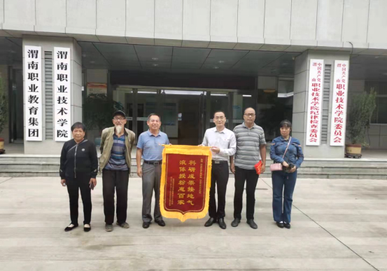9月23日,在第四个“中国农民丰收节”到来之际,渭南市临渭区崇宁镇福万家苹果专业合作社李高宏、申来川、刘慧琴、任会利4人专程来公司赠送锦旗,表达对公司和渭南市果业研究院科技助农的感激之情。