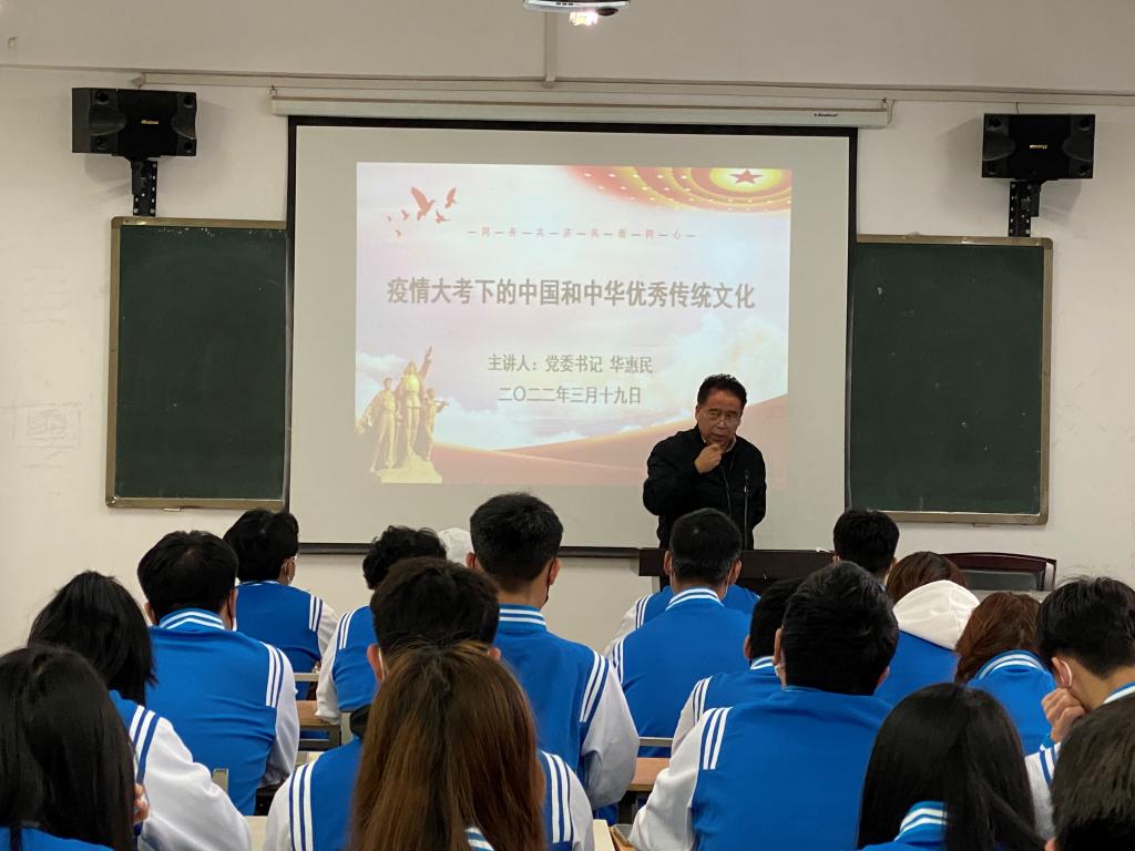 3月19日下午,党委书记华惠民深入伟德bv国际体育,围绕“疫情大考下的中国和中华优秀传统文化”这一主题,为公司班子成员和团学干部讲授了一堂有思想性、理论性和针对性的抗疫思政大课。