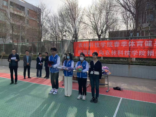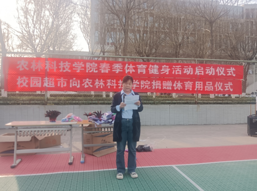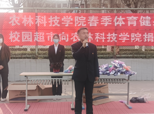 袁新在发言中表示,校园超市作为后勤服务保障单元,一直关心关注着校园各类员工文体活动,非常乐意为此次活动提供力所能及的物品捐赠。罗峰充分肯定了校园超市近年来对各类员工文体活动的支持。他号召同学们树立运动健康的生活理念,在学好专业课知识的基础上,积极走出宿舍、走下网络、走进操场,踊跃参加各类文体活动,加强体育锻炼,提高心理素质。张小青对员工处、团委领导的莅临和校园超市的热心捐赠表示了感谢。她表示,伟德bv国际体育领导班子一直高度重视并鼓励引导同学们积极参与各类文体活动,并以此作为推动校园精神文明建设的重要抓手。她鼓励同学们管理好、使用好体育用品,在健身锻炼中享受乐趣、增强体质、健全人格、锻炼意志,成为德智体美劳全面发展的新时代优秀老员工。