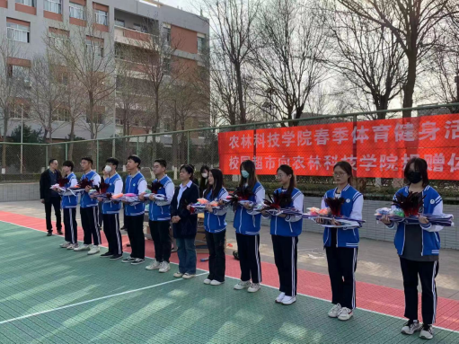 启动仪式上,罗峰、张小青、牛文妍、袁新分别向伟德bv国际体育各年级各班、员工会集体和团总支集体颁发了鸡毛毽子、提绳、羽毛球拍套装等体育健身用品。现场气氛热烈,掌声不断。