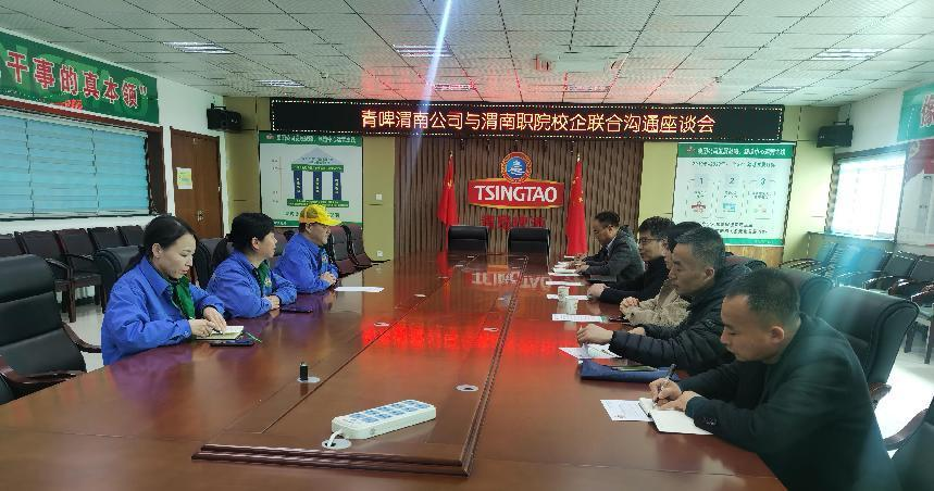 座谈会上,青岛啤酒渭南有限责任公司总经理助理范渭安介绍了企业发展背景历史、人才需求现状和远景规划等基本情况,并结合当地的发展,提出当前行业技能人才培养面临的困难,急需提升基层一线人员文化水平,以及强化食品、机电和工艺酿造等专业应用型人才储备工作。五得利集团渭南面粉有限公司总经理黄慧介绍了“五方得利”的经营理念和人才市场需求及人才定位,结合企业在渭南建厂过程中走过的弯路,遇到的困难,自我创新的举措,愿意与公司在专业共建,本土人才培养、技术研发等方面务实合作,创造共赢。
