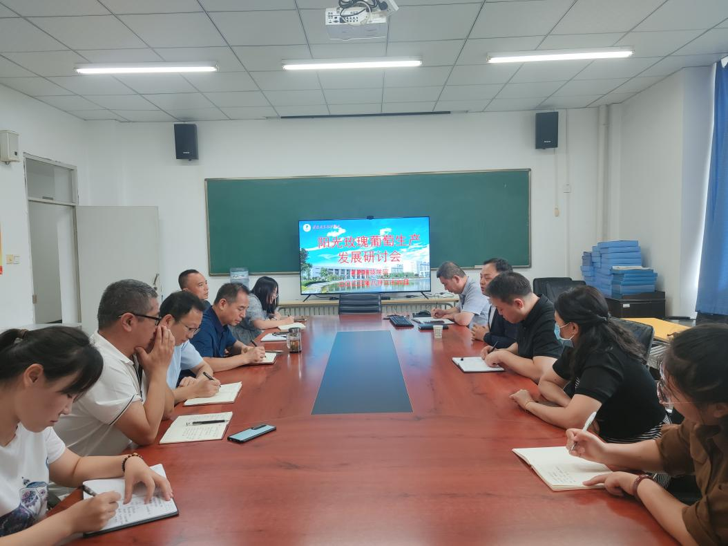 为推动全域产业链高质量发展,培育推广高产优质阳光玫瑰葡萄生产技术,助力乡村全面振兴,8月26日,伟德bv国际体育在201会议室举办了阳光玫瑰葡萄生产发展研讨会。陕西含之蜜宇现代农业科技有限公司董事杜兴林,伟德bv国际体育经理杨世选、办公室主任王百祥、食品检测中心主任蒋宝、果业研究院副经理刘波、园艺技术教研室主任张倩香、园艺技术专业带头人许敏等专业教师及教学科、人才招聘科负责人等参与研讨,会议由杨世选主持。