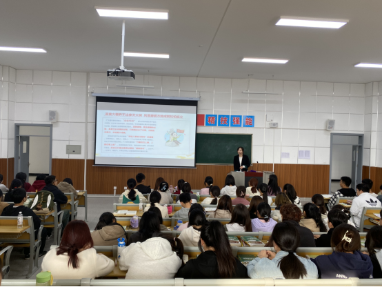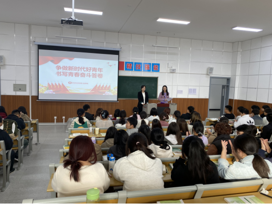 会上,赵婷峰以习近平对广大青年的殷切寄语“立志做有理想、敢担当、能吃苦、肯奋斗的新时代好青年”为主题,通过列举奥运健儿、井冈山精神、长征精神、奋斗新青年等具体案例,从追随理想之光、扛起青春责任、经受风雨洗礼、嘹亮奋斗号角四个方面进行讲解,号召同学们要坚定不移听党话,跟党走,踔厉奋发、勇毅前行,让青春在全面建设社会主义现代化国家的火热实践中绽放绚丽之花。